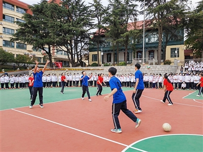 学生在崭新的操场上展示体育锻炼成果。王晓雨 摄