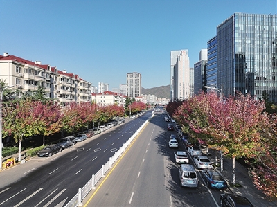 同样为城市带来一抹喜庆红色的,还有梅岭西路刚刚更换的美国红枫,到了秋季,叶子变成红色或者橙红色,亮眼夺目。