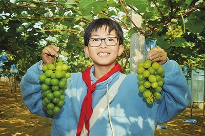 ◀产业园出产的阳光玫瑰葡萄香甜可口。
