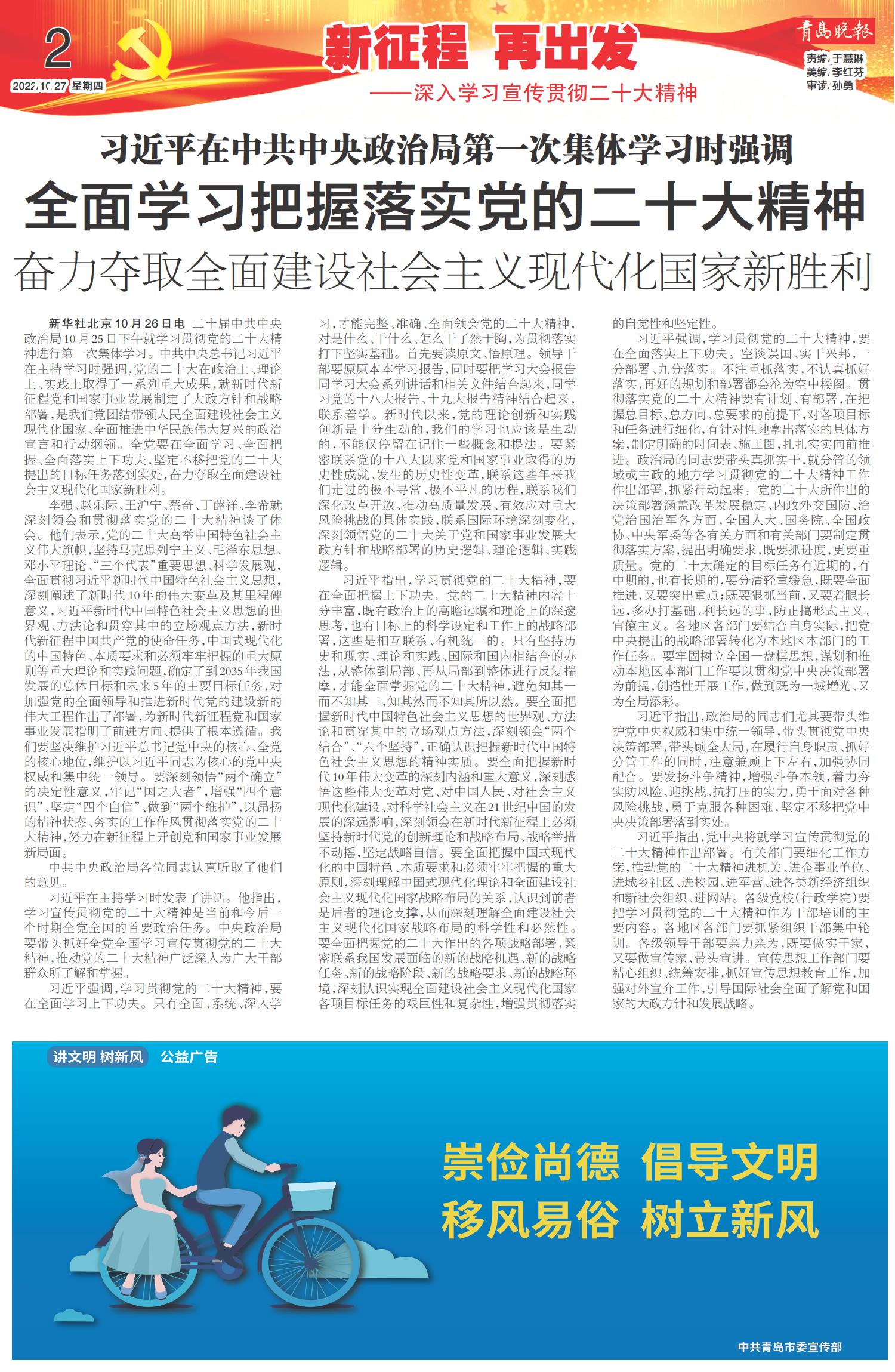 全面学习把握落实党的二十大精神