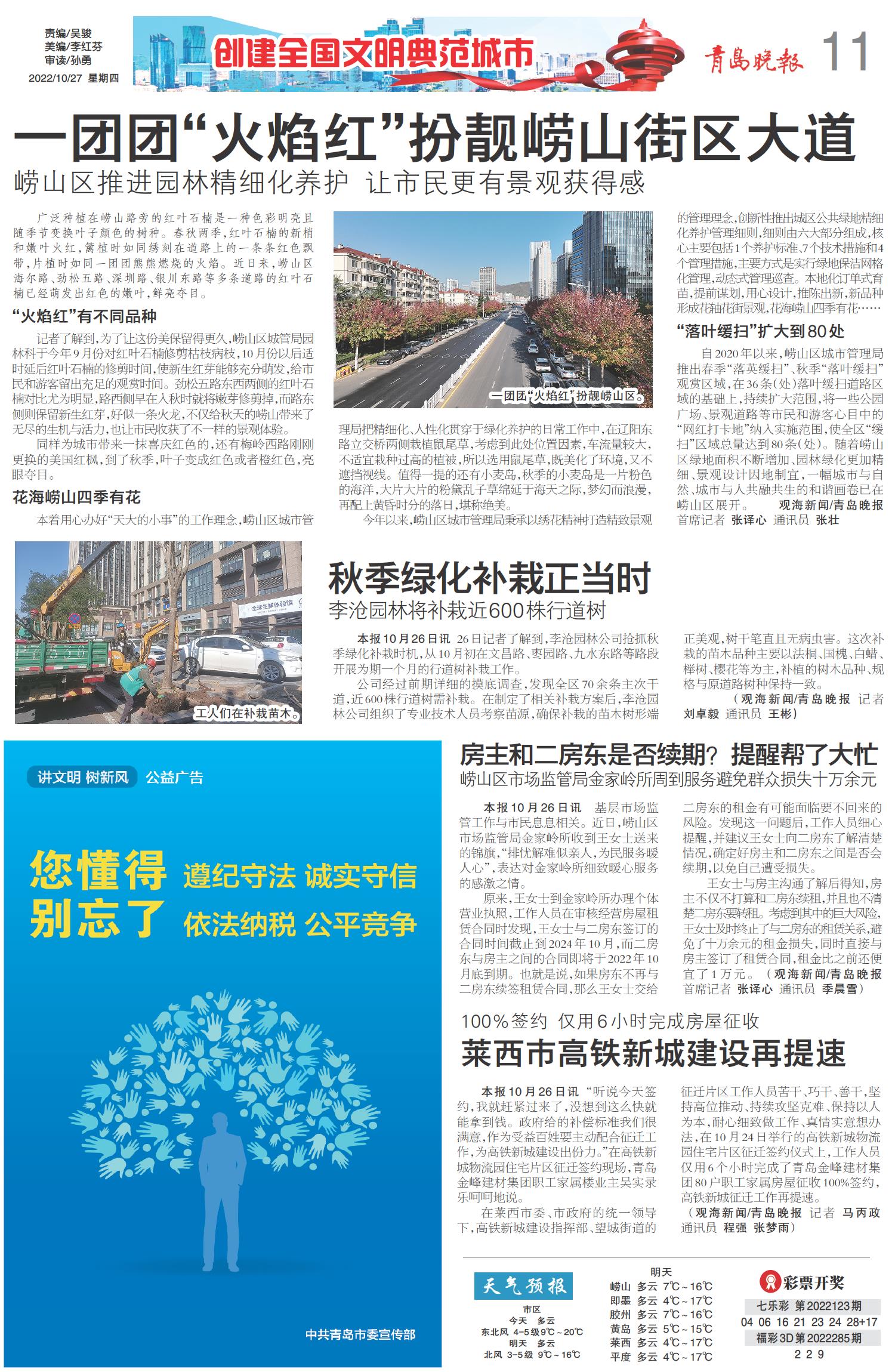 一团团“火焰红”扮靓崂山街区大道