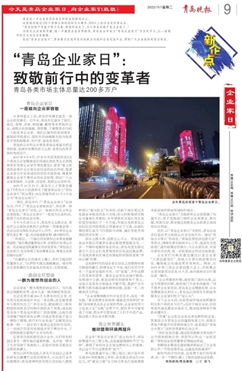为肯定企业家的贡献,进一步激发企业家积极性,青岛在去年设立“青岛企业家日”为法定节日,以一座城市的名义向企业家致敬。