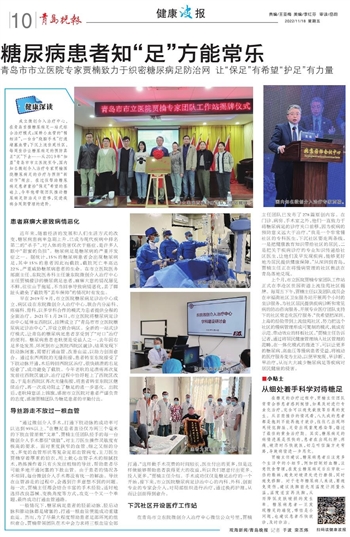 在青岛市立东院微创介入治疗中心微信公众号里,贾楠主任团队已发布了278篇原创内容。在门诊、病房、手术室之外,他们一直致力于将糖尿病足的诊疗关口前移,因为疾病的预防意义远大于治疗。“我是一个非常懂社区的专科医生,下沉社区要走两条线,一是把健康教育知识带给社区的居民,二是把关于疾病诊疗的专业知识传递给社区医生,让他们及早发现疾病,能够更好地为居民提供健康保障。”从深圳到青岛,贾楠主任正在将慢病管理的社区做法在青岛落地兑现。