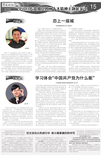 由青岛市委宣传部、青岛日报社主办,青岛晚报承办的“学习宣传贯彻党的二十大精神”主题征文活动正在火热进行中。
