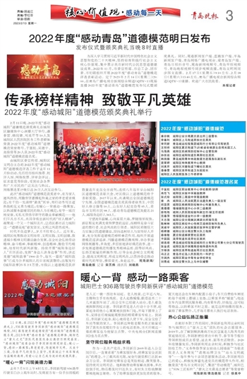 由城阳区委宣传部、城阳区文明办主办的2022年度“感动城阳”道德模范评选工作于去年11月份启动,先后经历组织推荐、初评入围、网络投票、评审会评议、征求意见等阶段,受到社会各界和广大市民的广泛关注与热议,网络票选累计吸引近20万人次互动参与。