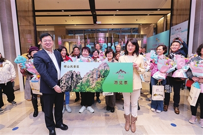 副市长赵燕等领导为入境游首发团团员赠送欢迎鲜花及伴手礼。