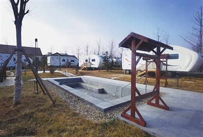 青岛工人温泉疗养院内的房车营地内,有温泉泡池。