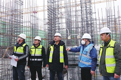 辛良瑞(中)和住建、监理、建设方一同查看项目质量。