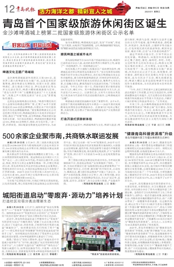 近日,文化和旅游部公布了第二批国家级旅游休闲街区公示名单,金沙滩啤酒城旅游休闲街区榜上有名,将成为青岛首个国家级旅游休闲街区,助力青岛西海岸新区全面提升旅游品质、青岛打造“宜居宜业宜游高品质湾区城市”。