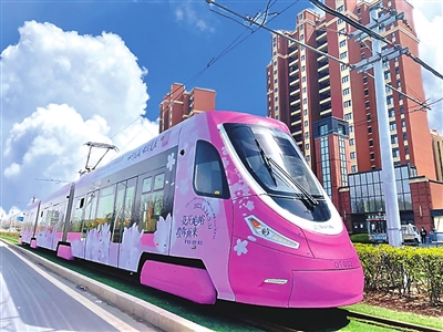 记者看到,城阳有轨电车樱花主题专列的车身布满了樱花元素,在蓝天白云的映衬下,行驶在绿草如茵的轨道上,好像一片流动的樱花林。36米车身以樱花粉为主色调,靠近时有种进入樱花谷的感觉。城运控股城阳巴士公司轨道巴士公司打造出樱花主题列车,为乘客带来“云赏花”体验,乘坐有轨电车就能感受到春日里的别样美好。城阳有轨电车沿线惠及多家大型社区、学校、商场,樱花主题列车的开出,将带动更多乘客在春日暖阳里踏青赏樱,共赴一场春日盛会。据了解,樱花主题列车乘务员将为有需要的乘客提供细心、温馨的赏樱路线问询服务,在创建全国文明典范城市期间,为打造城市品牌增光添彩。