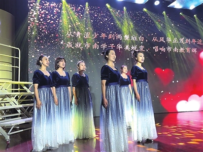 青年教师倾情献唱表达对退休教师的礼敬之情。张琰 摄