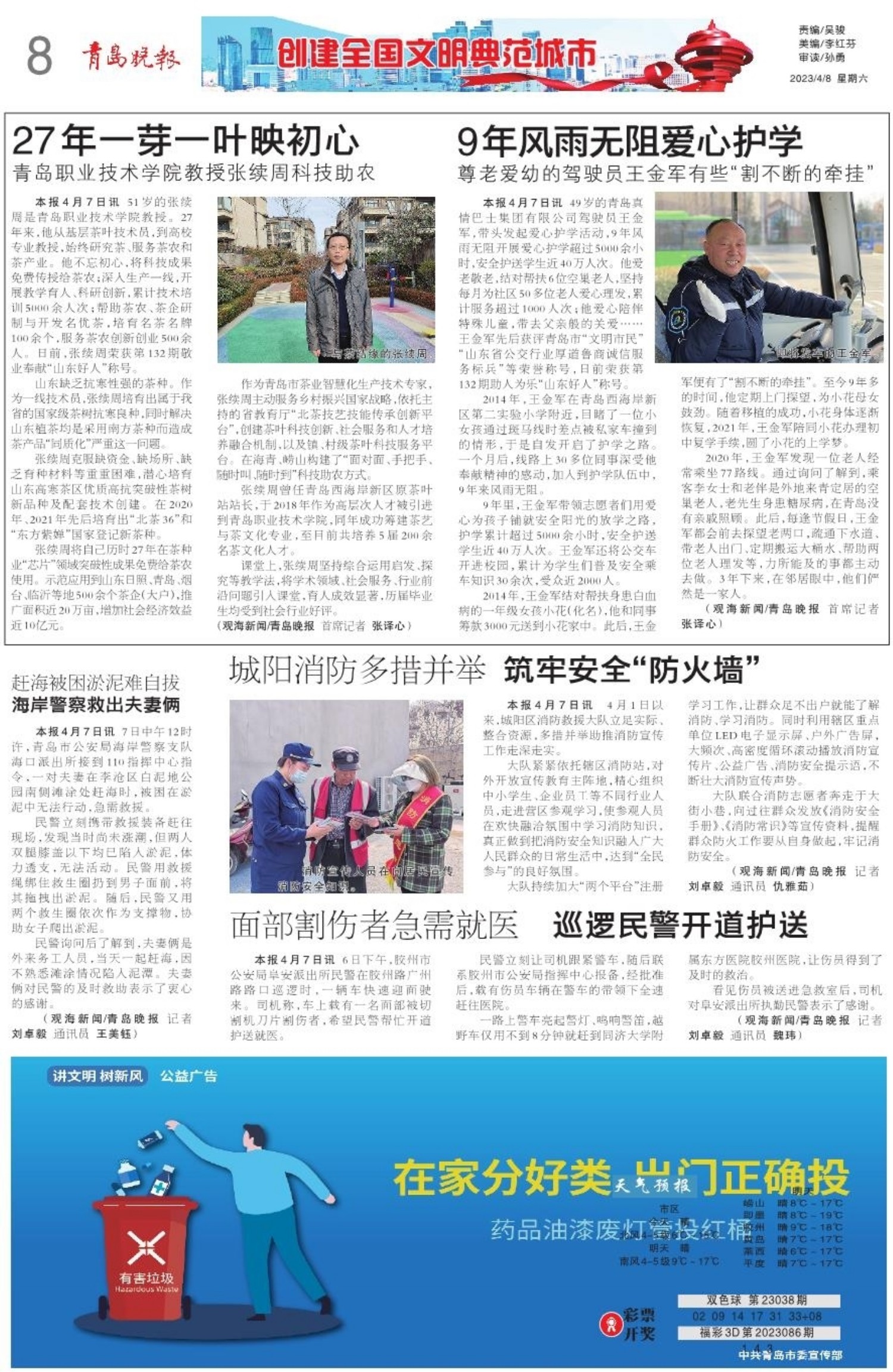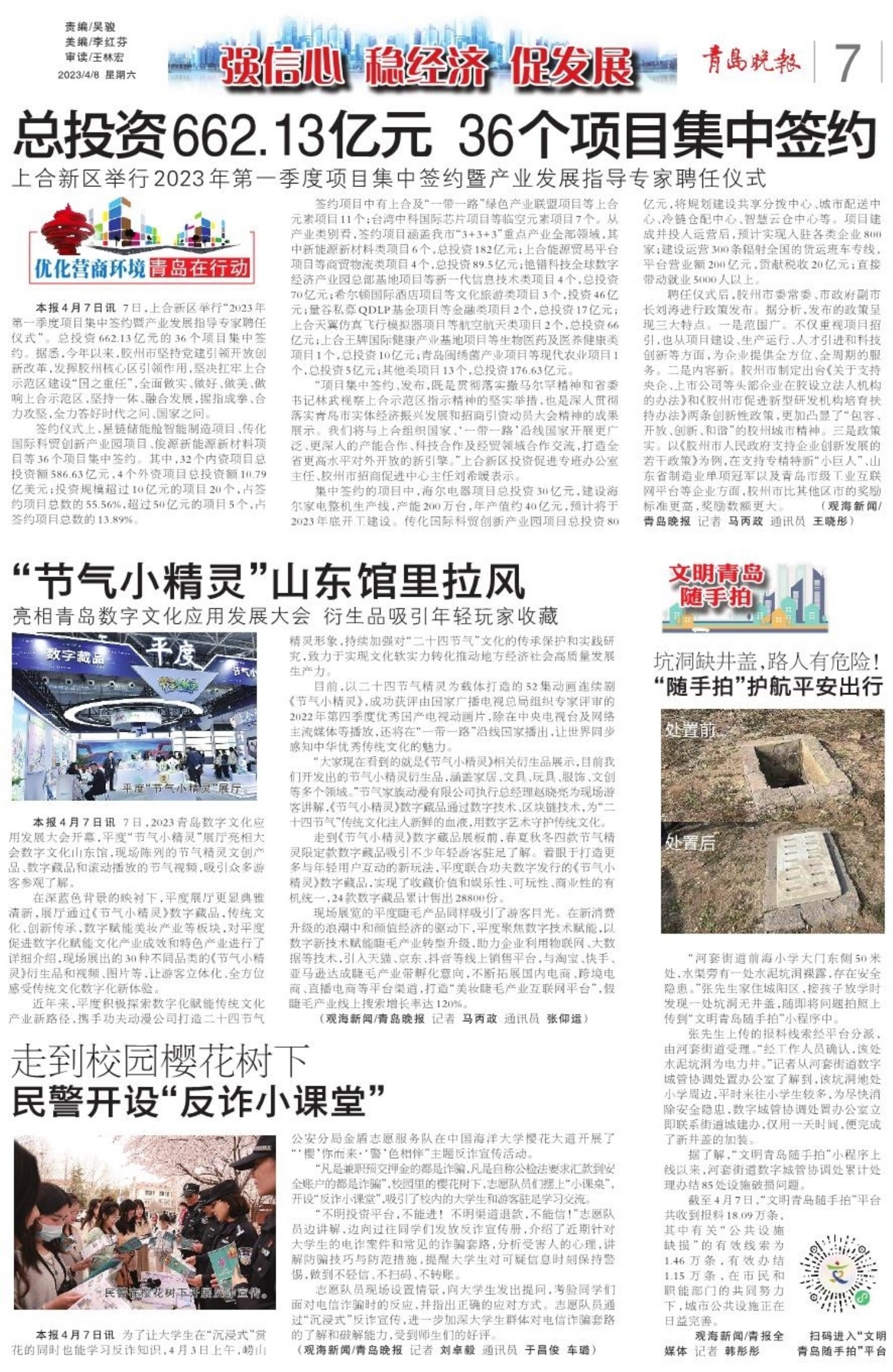A01 头版 A02 2023青岛数字文化应用发展大会 A04 2023青岛数字文化应用发展大会 A05 城市更新建设 让生活更美好 A06 活力海洋之都 精彩宜人之城 A07 强信心 稳经济 促发展 A08 创建全国文明典范城市 A09 核心价值观·感动每一天 A10 慢读 A11 作文课 A12 开卷