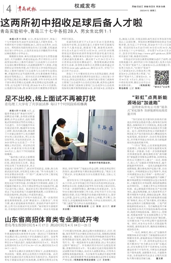 本报4月11日讯 11日,青岛实验初中、青岛三十七中陆续发布2023年足球后备人才招生简章。今年两所初中分别计划招收28人,同为14名男生、14名女生。两校招生均面向青岛市内三区在籍、在校就读的应届小学毕业生,以及具有青岛市学籍的符合外地回青政策的小学毕业生。