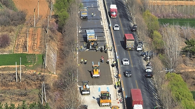 “在试验段施工中,我们将一切从道路施工规范出发。通过施工工艺、工序的不断完善以及水稳拌和料的合理配比等,为交通工程建设积累经验打造样板。”施工单位中建八局现场负责人王凯说。