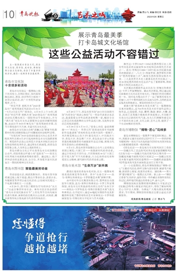 五一假期展示青岛文艺,青岛市文化馆、图书馆、美术馆、博物馆等公益文化场馆,准备了丰富多彩的活动,邀你一起畅享青岛最美季。