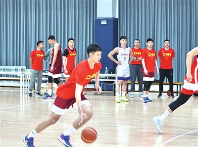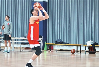 中国男篮周琦在国信篮球训练基地训练。栾丕炜 摄