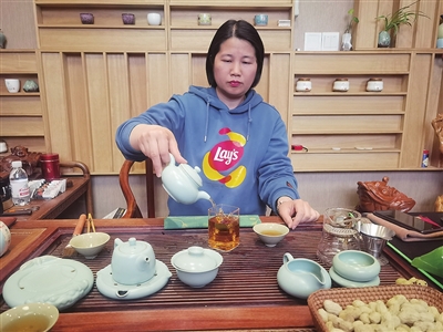 在青岛长期经营茶叶生意的蒋珠润,见证了青岛人这些年来更爱茶,更懂茶。刘卓毅 摄