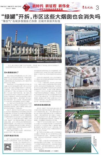 2006年,原青岛开发区热电燃气总公司高达153米的大烟囱按预定计划向南倒去,数分钟后烟雾消散,当时中国乃至亚洲最高的建筑爆破宣告成功。该大烟囱始建于1993年,其爆破拆除从高度到壁厚当时在全国乃至亚洲都堪称第一。2010年,位于香港中路与延安三路路口市南沿海一线最后一根大烟囱成功爆破,海天供热站也随之拆除。去年,负责浮山后区域供热的青岛能源热电集团第二热力有限公司110米高的烟囱拆除,6台燃煤锅炉彻底退出历史舞台,取而代之的,是占地面积更加小、供热效率更高的4台燃气锅炉,供热能力直接提高了一倍。