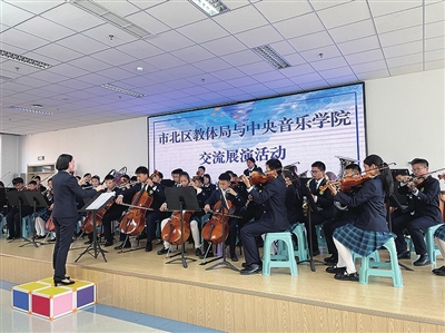 当天下午,市北区教体局和中央音乐学院在青岛滨海学校举行音乐教育交流活动,开启中央音乐学院与市北区展开全面艺术教育合作的新篇章,这是市北区认真落实国家和省、市关于加强和改进新时代学校美育工作要求的又一重要举措。