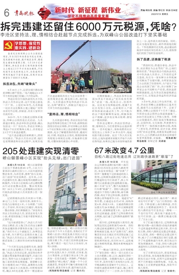 备受关注的双峰山山头公园改造项目,作为2023年的青岛市民生实事,是完善城市功能、提升城区品质、增进民生福祉的重要工程。5月18日记者了解到,李沧区目前已顺利拆除双峰山上超过2.3万平方米违法建筑,不仅赶超节点完成拆违工作,为改造项目顺利实施打下坚实基础,还想方设法挽留住了6000万元税源。