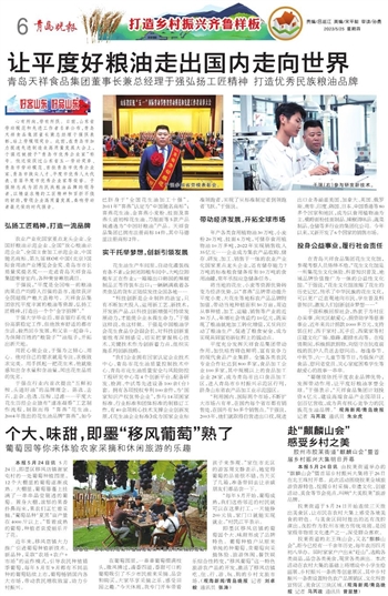 于强说,“平度是全国唯一的粮油肉果总产均跨入百强的县市,连续获评全国超级产粮大县称号。天祥食品集团依托平度丰富的粮油等资源,弘扬工匠精神,打造出一个个‘金字招牌’。”
