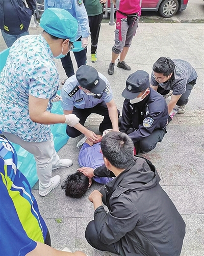 热心人将小伙按倒后,民警和医护人员先后赶到。