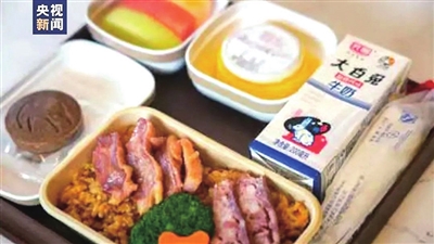 餐食有多丰富?本次航班上,有旅客投票选出的主题餐食亮相。其中,经济舱的餐食叫“五福临门”,主食是腊味煲仔饭,搭配三色水果拼盘,C919首航特色芒果布丁,还有巧克力酥饼、牛奶。