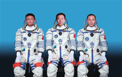 这是神舟十六号航天员景海鹏(中)、朱杨柱(右)、桂海潮。新华社发