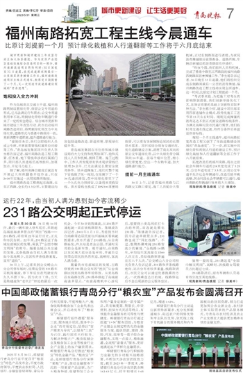 本报5月30日讯 31日晚10时许,最后一辆车驶入停车场后,串联起岛城前海诸多景点的“网红”线路——231路线,将结束22年运行历史,正式和市民告别。22年来,231路见证了岛城东部城区的发展,荣获了“全国巾帼文明岗”的称号。随着岛城公共交通的发展,这条线路由当初人满为患到如今客流稀少,且因和多条线路重复,宣布“退役”。