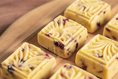 其中原味绿豆糕精选上成的脱皮绿豆,自行蒸煮制作,保留了绿豆原有的营养成分及纯香原汁的绿豆口味,使用新西兰安佳黄油,使绿豆糕吃起来有绿豆的清香和黄油的奶香味,绿豆糕采用轻糖的制作方法,吃起来香甜不腻,冰冻爽口。蔓越莓绿豆糕使用经过24小时酒酿浸泡的天然蔓越莓,吃起来有朗姆酒的浪漫和蔓越莓的香甜。青稞红豆绿豆糕使用高品质的青稞和红豆馅,采用轻糖的工艺,冷藏过后口感香甜软糯。