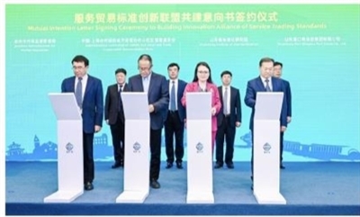 服务贸易标准创新联盟共建意向书签约仪式。