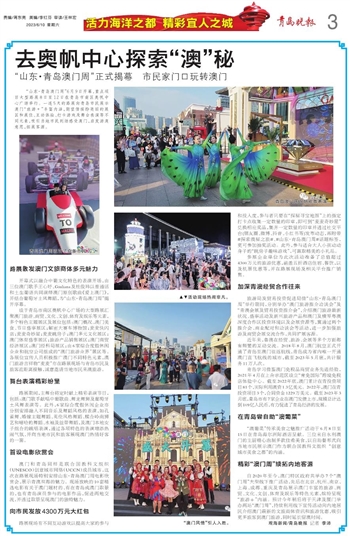 和投入度,参与者只要在“探秘寻宝地图”上的指定打卡点收集一定数量的印章,即可到“麦麦奇妙屋”兑换相应奖品,集齐一定数量的印章并透过社交平台(朋友圈、微博、抖音、小红书等)发布动态,再附带#探索澳秘之旅#、#山东·青岛澳门周#话题标签,更可参加抽奖活动。此外,参与适合大人小孩动动身子的“跳房子趣味游戏”,可赢取精美的小礼品。