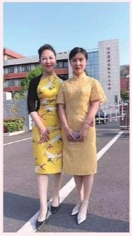 青岛六十八中考点前,来自二中的考生吕世凯的妈妈和舅妈,穿着特意准备的旗袍,等待着孩子走出考场。据她们介绍,高考这几天准备了不同颜色的旗袍来为孩子陪考,带着美好的寓意,期待美好的结果。