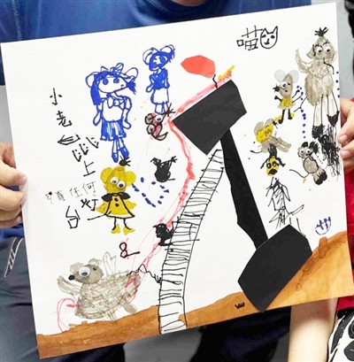 从今年开始,我陪伴她的时间多了,经常教她认字,每周陪她上画画课。我经常告诉她:“你一个小孩竟然认识那么多字,所以走路就慢一点,哪能什么好事都让你摊上。”她真的听进去了。一次画画课,有个小朋友就问她:“你为什么不会走路?”她很自然地对答:“我正在学走路呢。”当时听完,我觉得我闺女真棒!