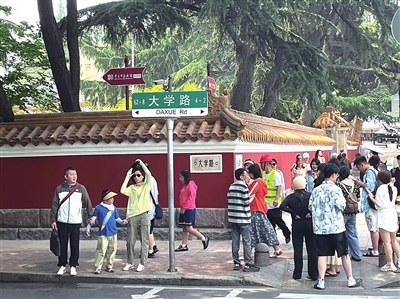 唯美的红墙、翠绿的法桐、如潮的人流……作为网红打卡地,大学路网红墙的“颜值”事关青岛城市形象和旅游品质。经过二十余天的紧张施工,16日,焕然一新的大学路网红墙正式和市民见面,崭新容颜立即吸引了众多游客争相与其亲密接触。