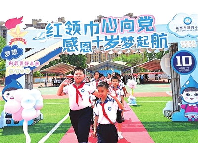 本报6月16日讯 16日上午,由团市委、市教育局、市少工委主办,莱西市委宣传部、莱西团市委、莱西市教育和体育局、莱西市少工委承办的“红领巾心向党,感恩十岁梦起航”青岛市少先队“十岁集体生日”主题队会示范活动在莱西市洙河小学举行。360余名少先队员齐聚一堂,共同庆祝十岁集体生日。