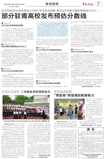 6月25日下午,山东省2023年高考成绩放榜后,家有考生的家庭正式将志愿填报工作提上日程。从山东省教育厅发布的一分一段表来看,一段线443分之上的考生达308701人,有望考取本科。对于不少青岛学子而言,驻青高校往往是他们首先锁定的目标。今年多少分能就读驻青高校?哪些专业如何报考?近日,部分驻青高校陆续发布预估分数线、位次,为考生、家长提供参考。