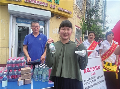 家住大港街道长春路社区的黄思雨同学积极参与到答题中来,虽然今年只有11岁,但主办方设置的问题也没有难倒她。她告诉记者,自己从小就喜欢喝崂山可乐和白花蛇草水,这次通过答题活动才了解到崂山水还有这么多学问。每位参与答题的市民都获得了主办方提供的白花蛇草水一瓶,这也更激发了市民答题的热情,不到两个小时时间,刺猬网准备的五箱白花蛇草水已全部发放完毕。
