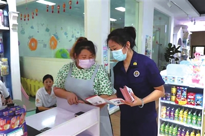 宣传人员在发放消防安全宣传资料。