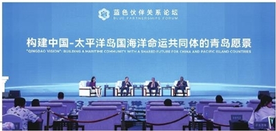 ▶蓝色伙伴关系论坛上嘉宾对话探讨青岛愿景。