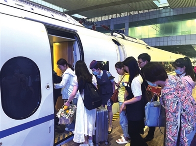 “面对客流激增的情况,我们充分预想,做好各项安全措施,创新创优特色服务,确保旅客出行安全有序温馨。”刘皓告诉记者,因为是智能复兴号,不允许超员,所以列车从青岛北一开车就全列定员。