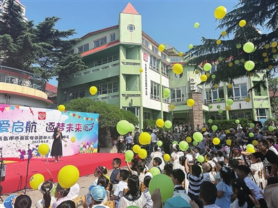 本报7月2日讯 6月30日,市南区安徽路幼儿园举行了主题为“臻爱起航 逐梦未来”的大班毕业典礼。身着盛装、拉着好朋友的手跨越成长之门,从隋吉敏园长和老师们手中接过毕业证书后,2023届的小朋友们迎来了人生中第一个毕业典礼。