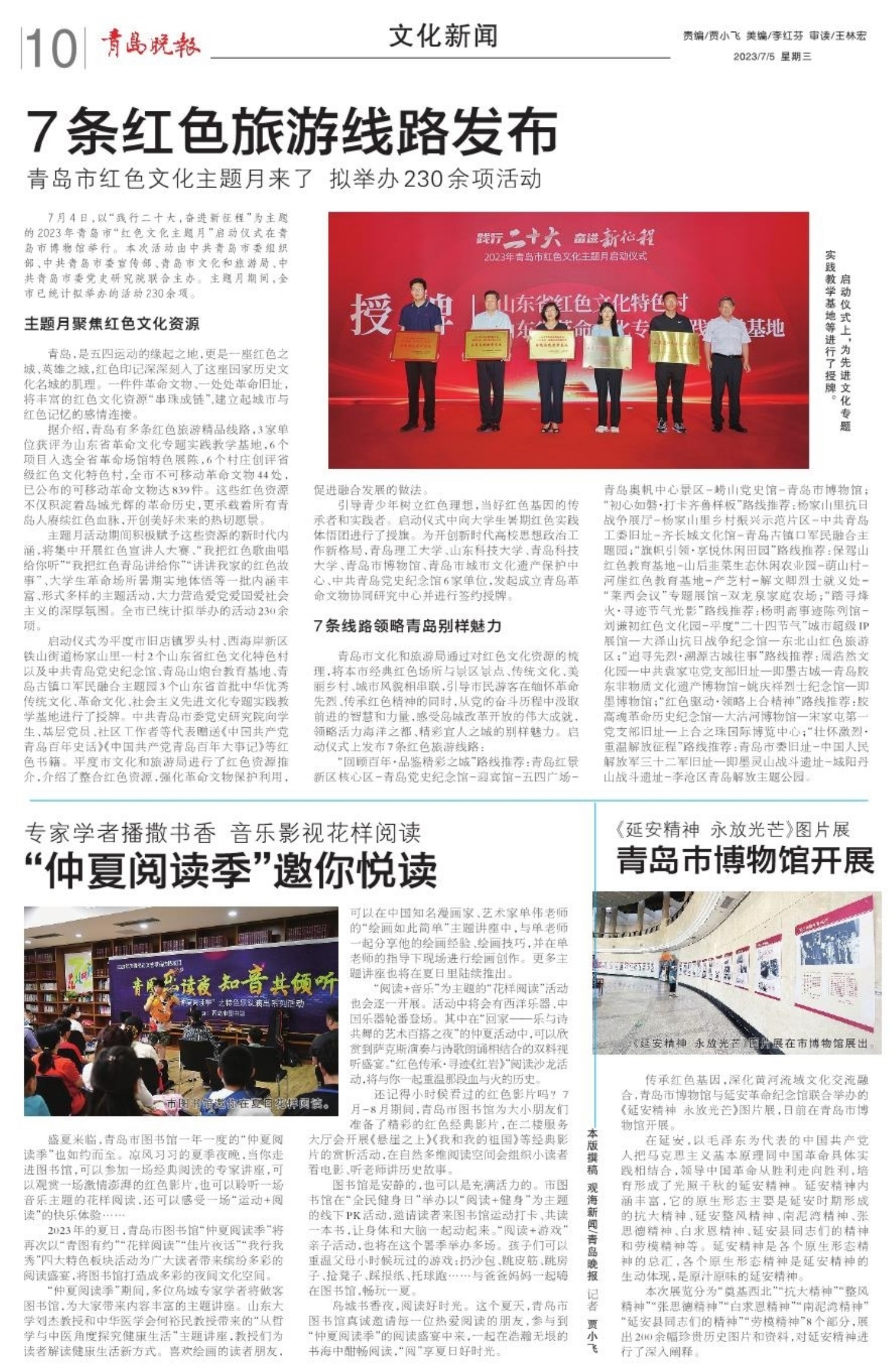 A01 头版 A02 活力海洋之都 精彩宜人之城 A03 奋斗者正青春 A04 强信心 稳经济 促发展 A05 活力海洋之都 精彩宜人之城 A06 权威发布 A07 打造乡村振兴齐鲁样板 A08 火热的一线 A09 新时代 新征程 新伟业 A10 文化新闻 A11 文化新闻 A12 博览