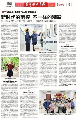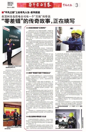 连日来,《青岛晚报》陆续刊发国网青岛供电公司优秀青年孙晓兰系列报道《“平凡之路”上的非凡人生》《她的青春 电量满格》《知识赋能 创新于微》《新时代的劳模 不一样的精彩》《“零差错”的传奇故事,正在续写》等稿件,讲述了准90后孙晓兰如何一步一个脚印,从电力“小白”成长为国家电网的青年榜样。在平凡的变电运维岗位上、在上万次的拉倒闸之间,孙晓兰耐得住寂寞、守得住初心,干出了不平凡的业绩。