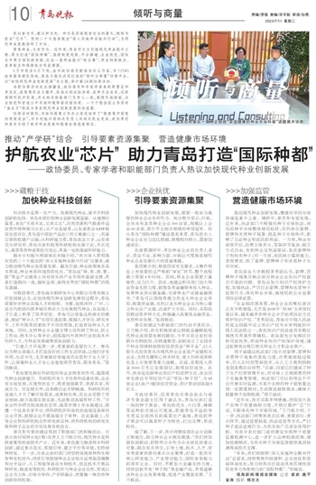 委员和专家的建议得到了职能部门的积极回应。市农业农村局种业处(筹)负责人王乃栋介绍,现代种业是科技密集型的高技术产业。近年来,青岛着力推进种业科研创新,通过重点攻关、奖励引导、建立平台等举措,支持育种研发。下一步,市农业农村部门将坚持常规育种和生物育种有机结合,持续引导鼓励种业企业综合运用基因编辑和分子设计、人工智能等前沿生物技术、信息技术开展品种研发,推进高等院校、科研院所与种业企业合作,形成以企业为主体、市场为导向、产学研融合、育繁推一体的育种创新协同机制。