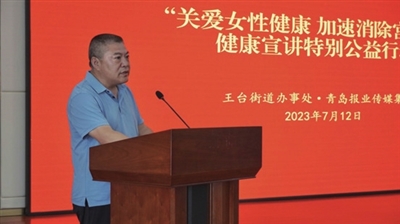 为深入贯彻落实《青岛市加速消除宫颈癌行动计划实施方案2023—2030 年)》,进一步增强女性健康意识,加快宫颈癌消除进程,7月12日,王台街道与青岛报业传媒集团共同开展“关爱女性健康 加速消除宫颈癌”健康宣讲特别公益行动。