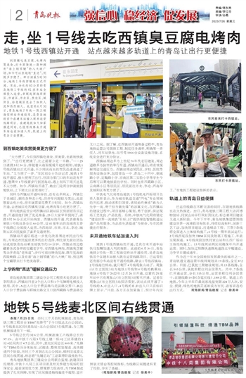 到西镇吃臭豆腐、电烤肉等美食,打卡西陵峡一路和拥有“海上钢琴键”的八大峡广场,如今可以坐地铁“直达”,别提多方便了。昨日清晨5时30分,地铁1号线西镇站正式开通。至此,全长约60公里的青岛地铁1号线的41座车站全部投入运营,串联起西海岸新区、市南区、市北区、李沧区、城阳区,给老城区送去了如织人流和热烈烟火。此前的6月30日,青岛地铁2号线一期工程海信桥站开通投用,是青岛地铁首个在建车站接入既有运营线路项目。在建地铁如火如荼推进同时,已投用线路未开通车站也在加速入列,轨道上的青岛日益便捷。