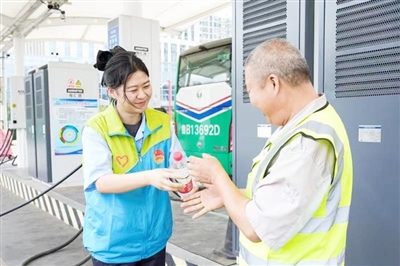 启动仪式结束后,团市委还组织青年志愿者们走上街头,到公交场站和环卫工人驿站,为公交车司机和环卫工人送上清凉,向他们高温下的坚守点赞致敬。