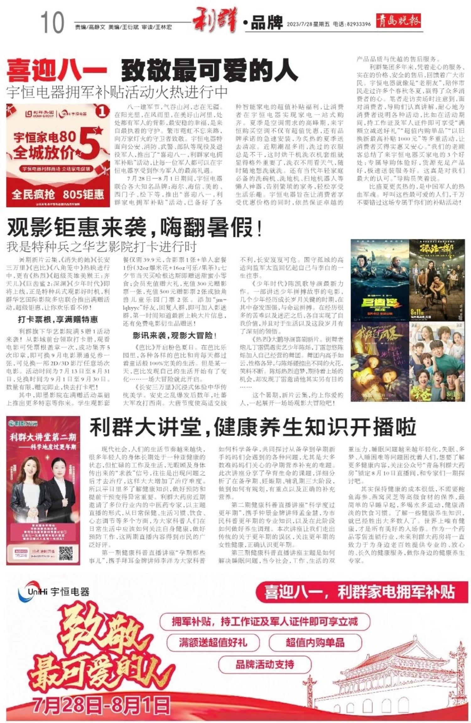 A01 头版 A02 强信心 稳经济 促发展 A03 活力海洋之都 精彩宜人之城 A04 活力海洋之都 精彩宜人之城 A05 火热的一线 A06 打造乡村振兴齐鲁样板 A07 利群 A08 利群·品牌 A09 利群·品牌 A10 利群·品牌 A11 城事 A12 活力海洋之都 精彩宜人之城 A13 警戒线 A14 健康波报 A15 健康波报 A16 人物故事