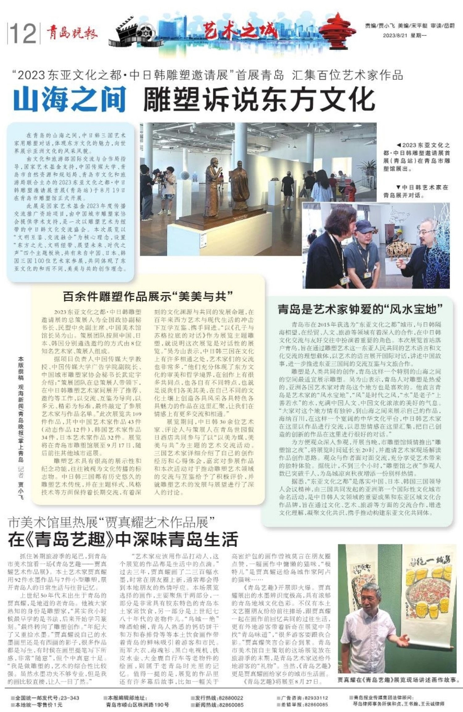 由文化和旅游部国际交流与合作局指导,国家艺术基金支持,中国传媒大学、青岛市自然资源和规划局、青岛市文化和旅游局联合主办的2023东亚文化之都·中日韩雕塑邀请展首展(青岛站)于8月19日在青岛市雕塑馆正式开展。